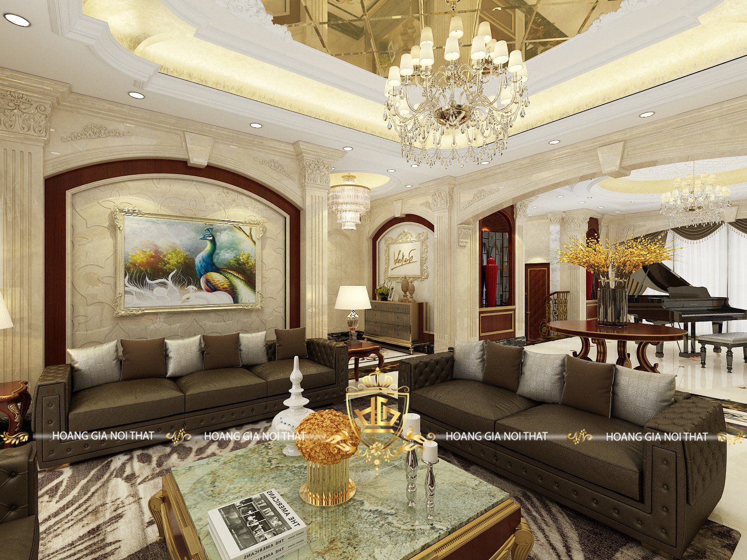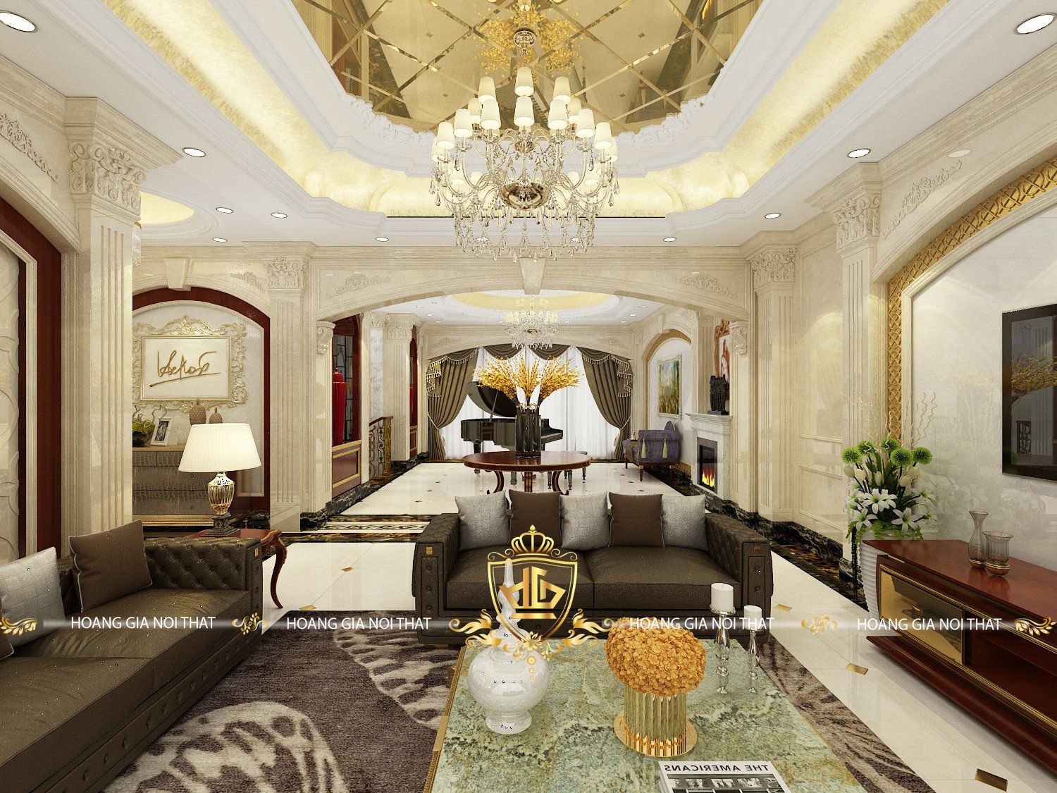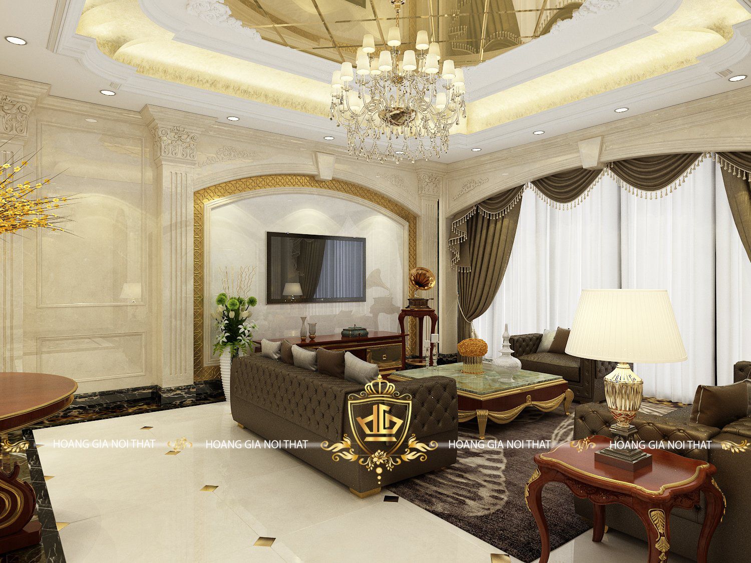 Phòng Khách Tân Cổ Điển Với Nội Thất Gỗ Óc Chó – Điểm Nhấn Đầy Ấn Tượng