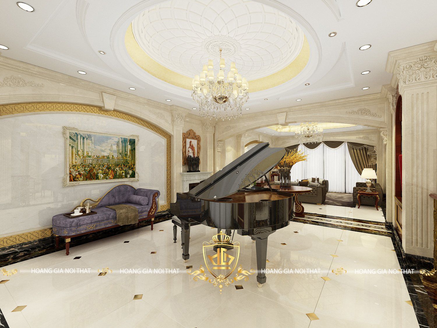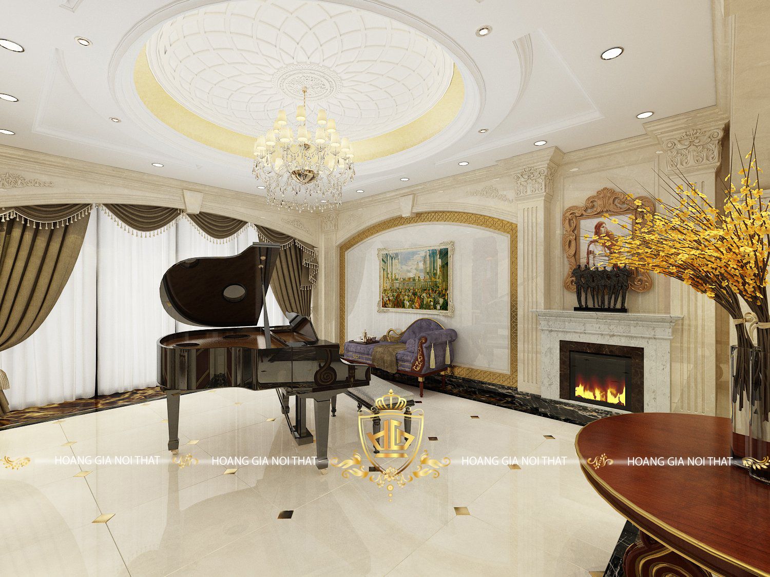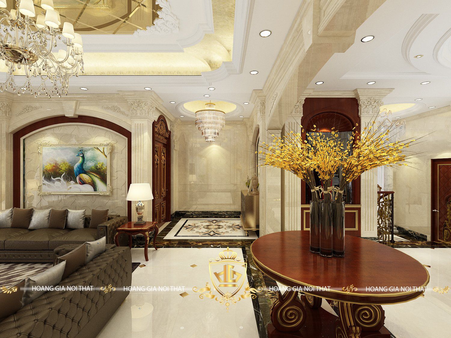 Phòng Khách Tân Cổ Điển Với Nội Thất Gỗ Óc Chó – Điểm Nhấn Đầy Ấn Tượng