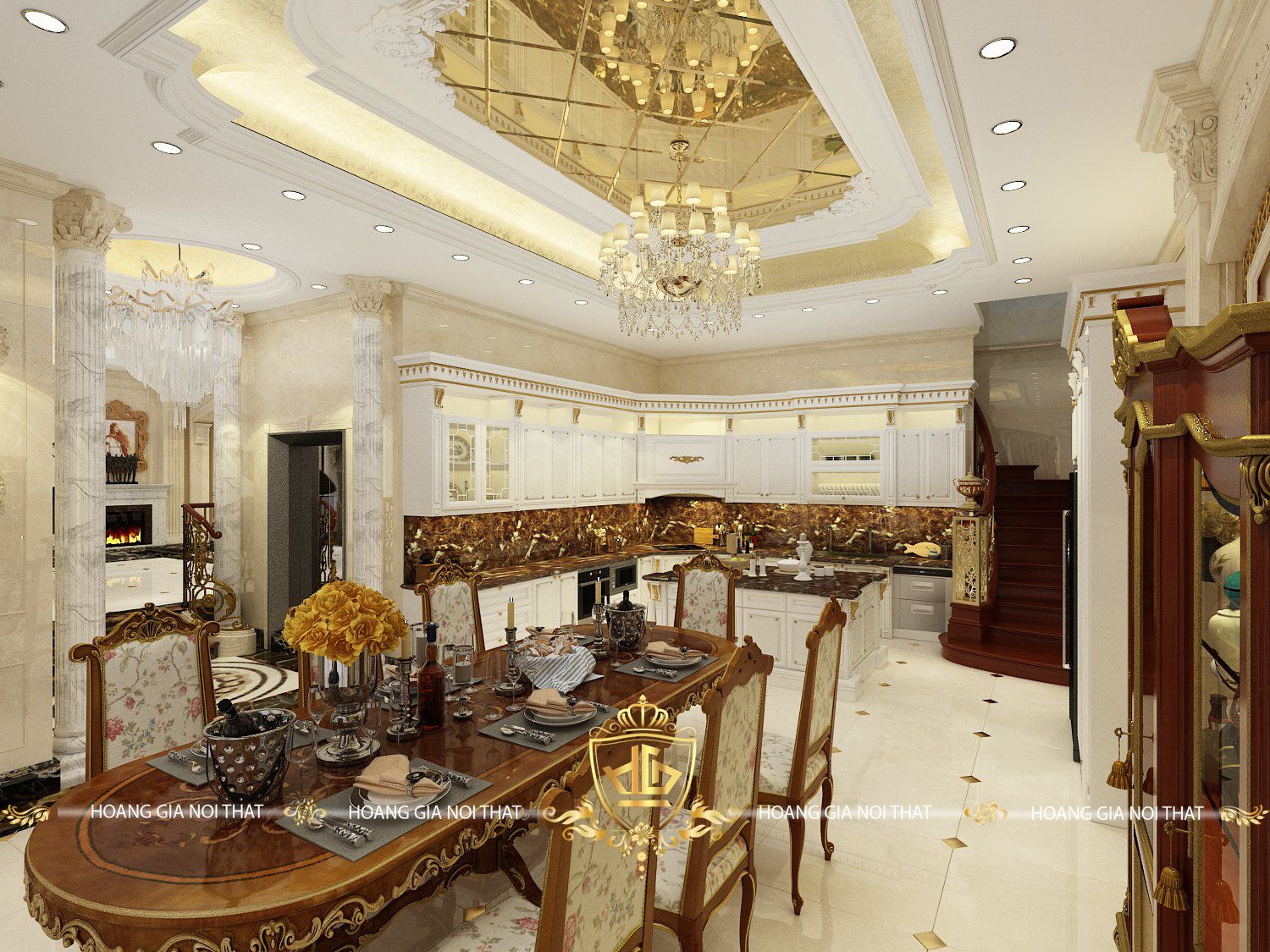 Khám phá nội thất gỗ óc chó tân cổ điển tại biệt thự chị Thanh Hương, Vinhomes Riverside. Nội thất phòng khách và phòng bếp được thiết kế đẳng cấp, mang phong cách sang trọng và ấm cúng.