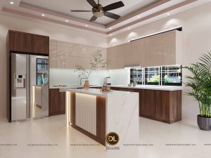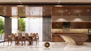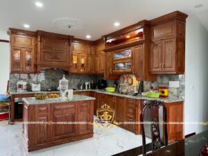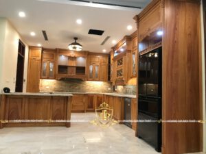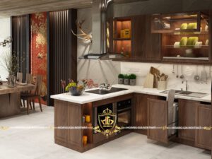 Khám phá nội thất phòng bếp gỗ óc chó tại biệt thự Hoàng Lan, Thái