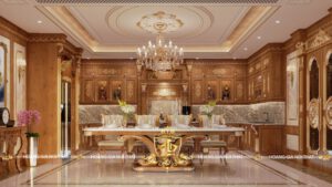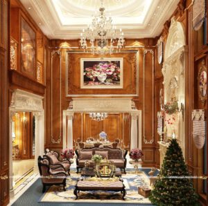 Thiết kế nội thất tân cổ điển gỗ óc chó cho biệt thự sang trọng