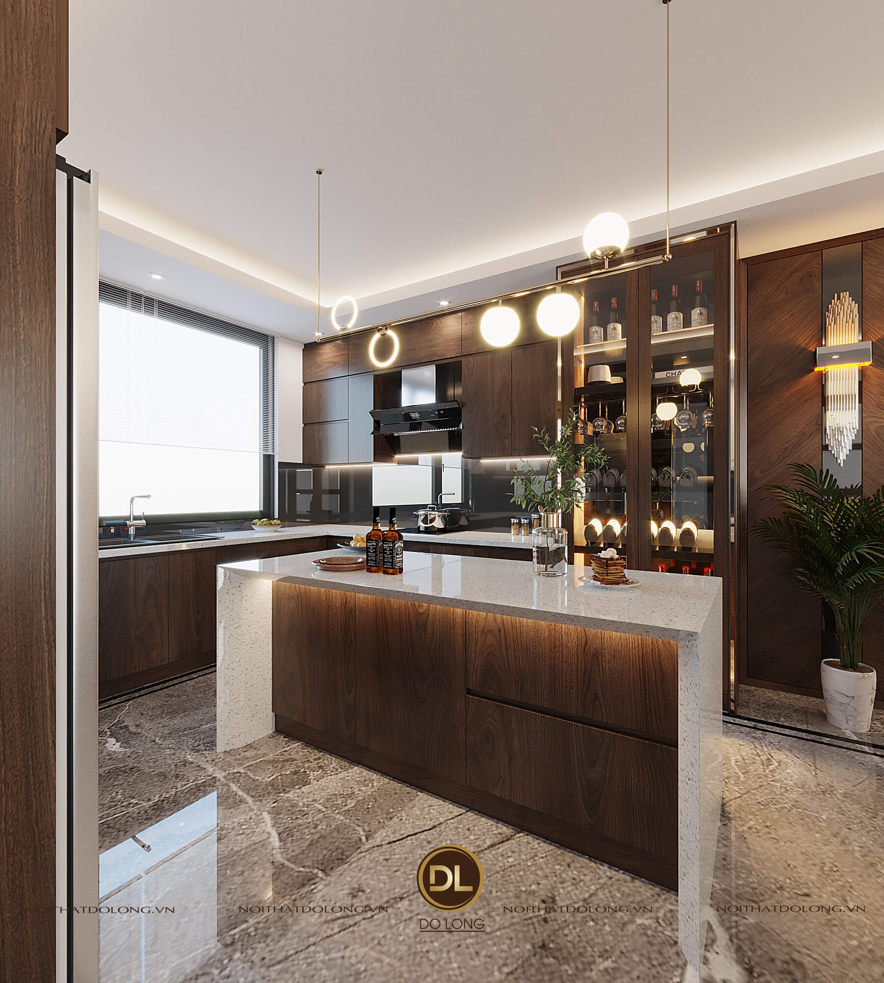 4. Các mẫu thiết kế nội thất phòng bếp gỗ óc chó tại Nội Thất Đỗ Long